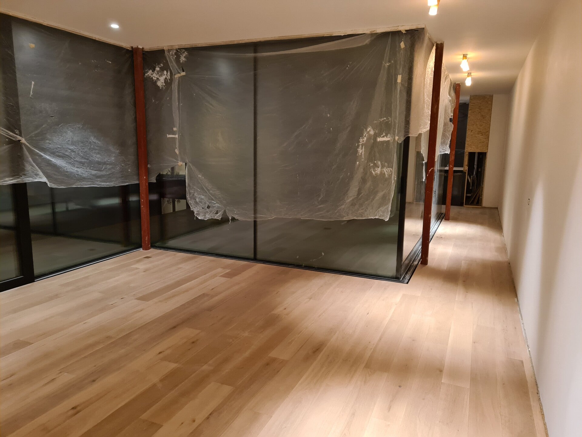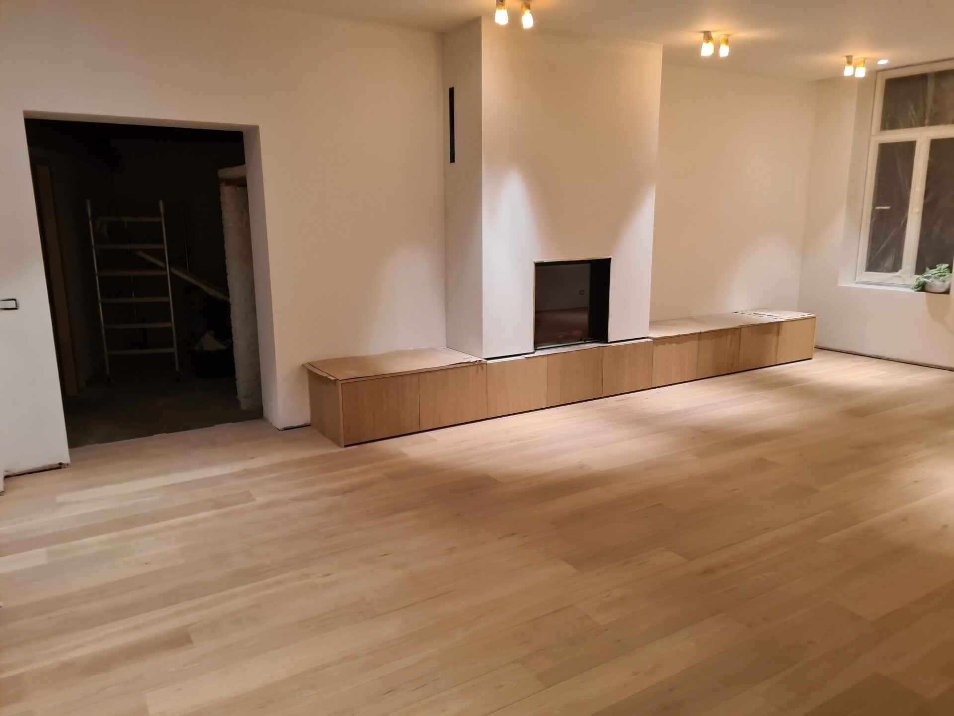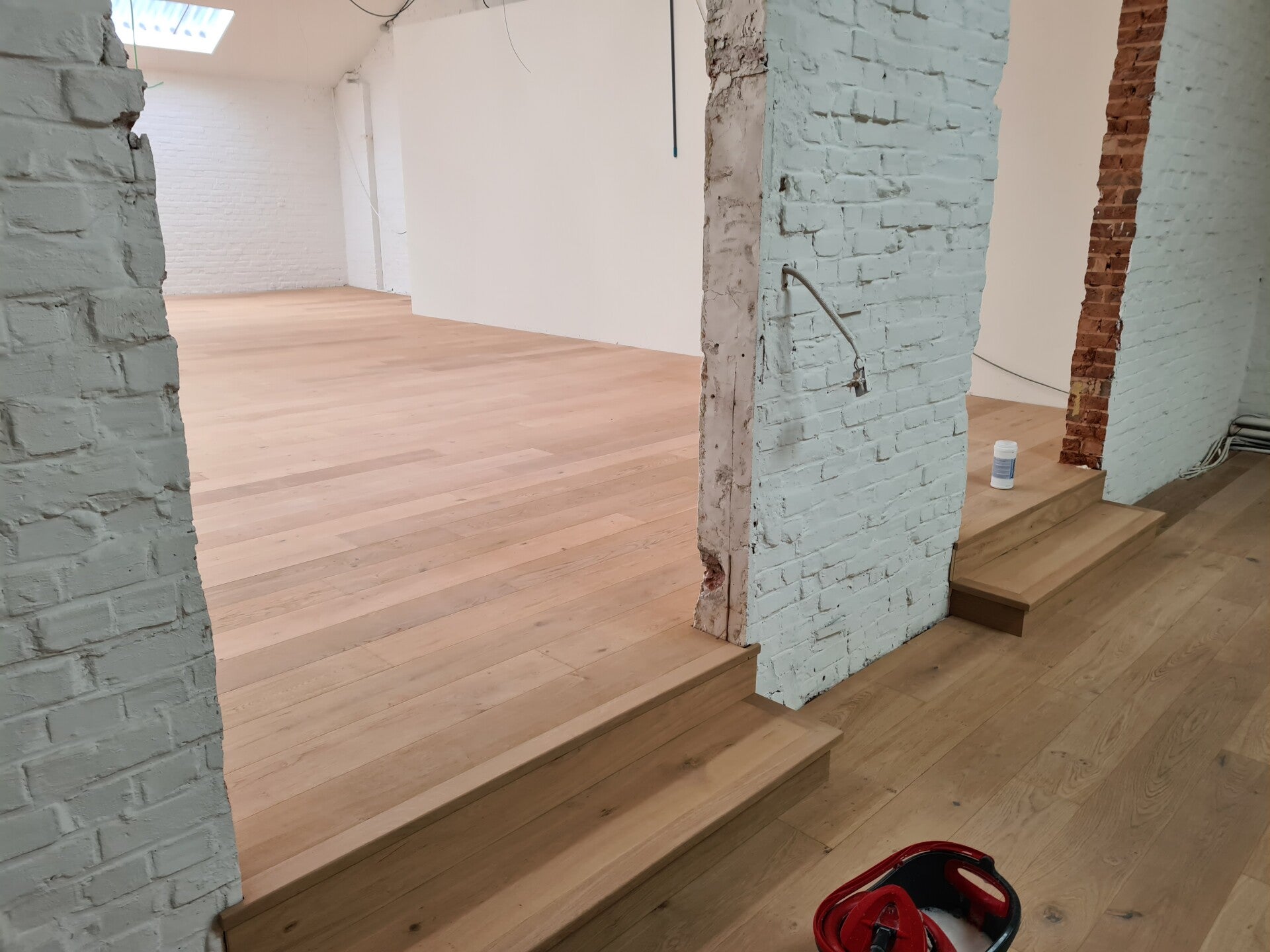Plaatsing eiken parket in loft/ Pose parquet chêne dans loft