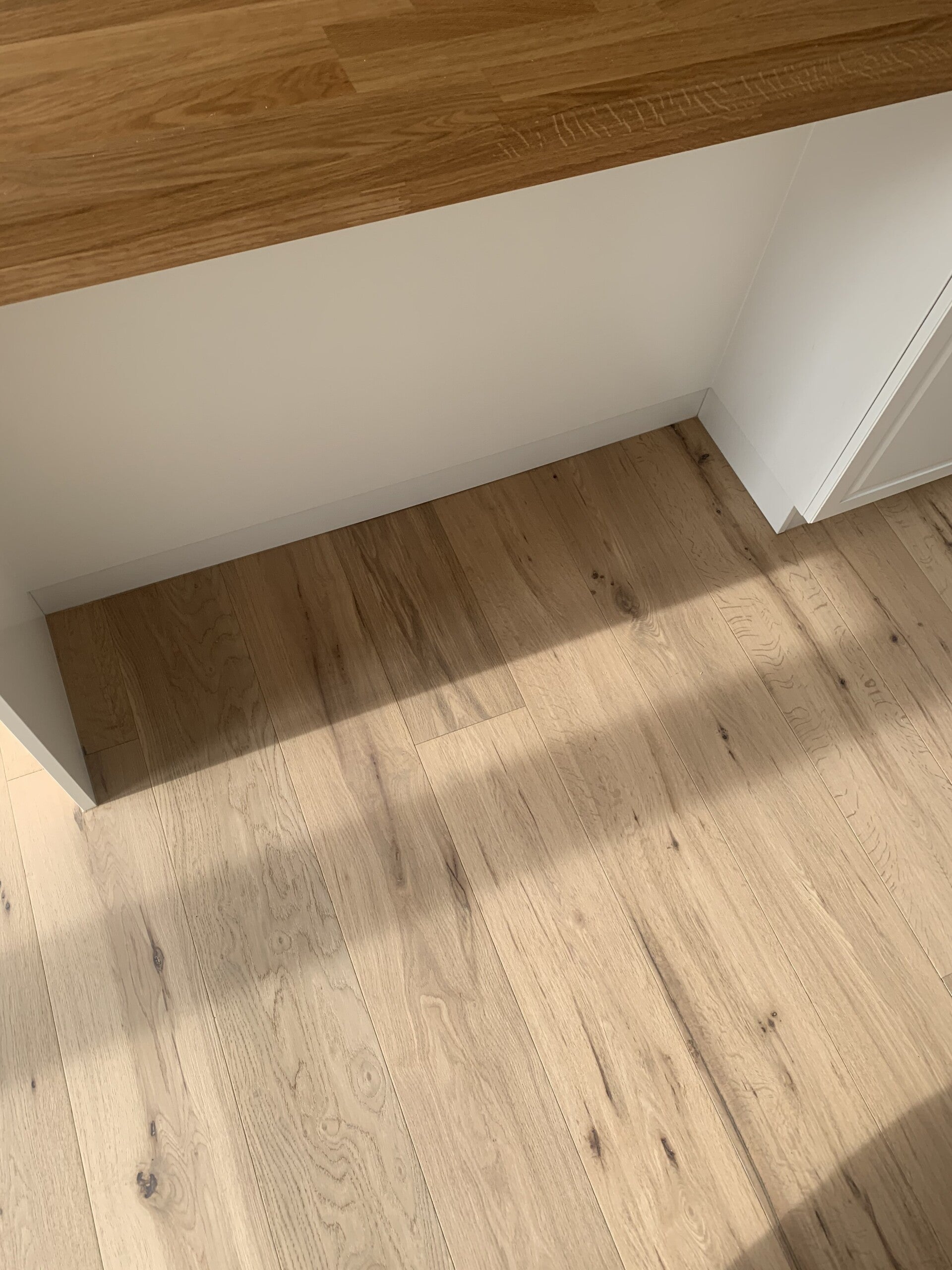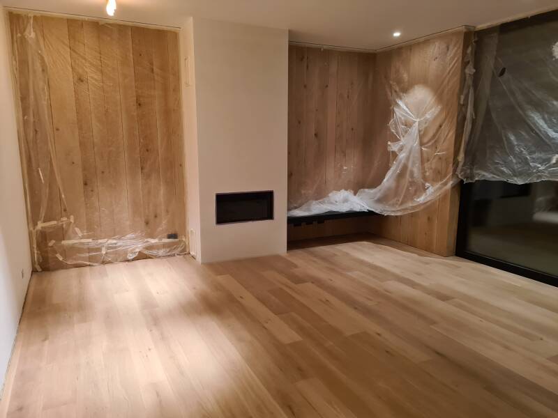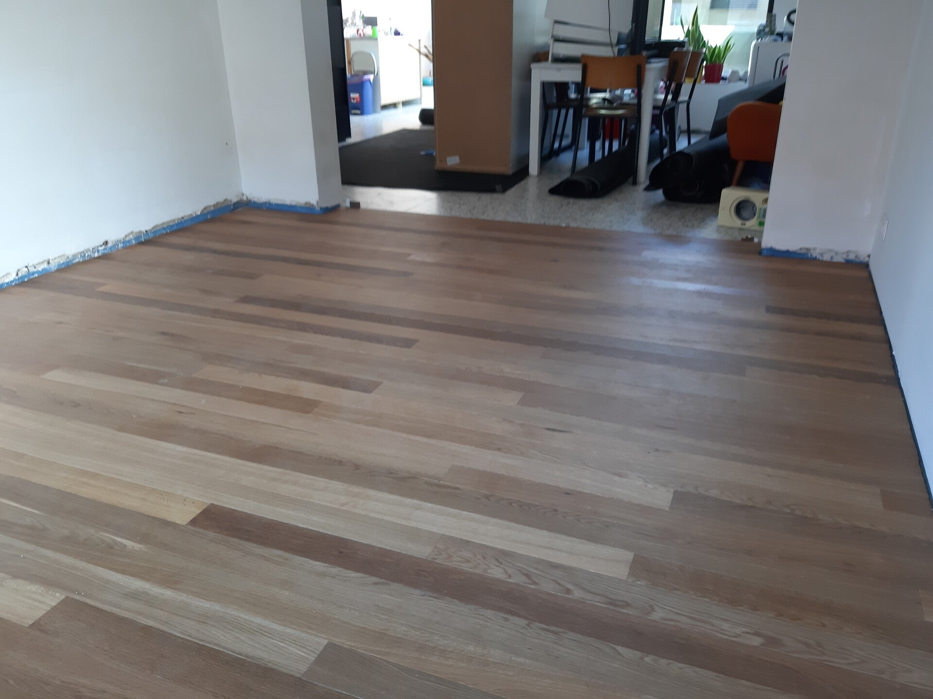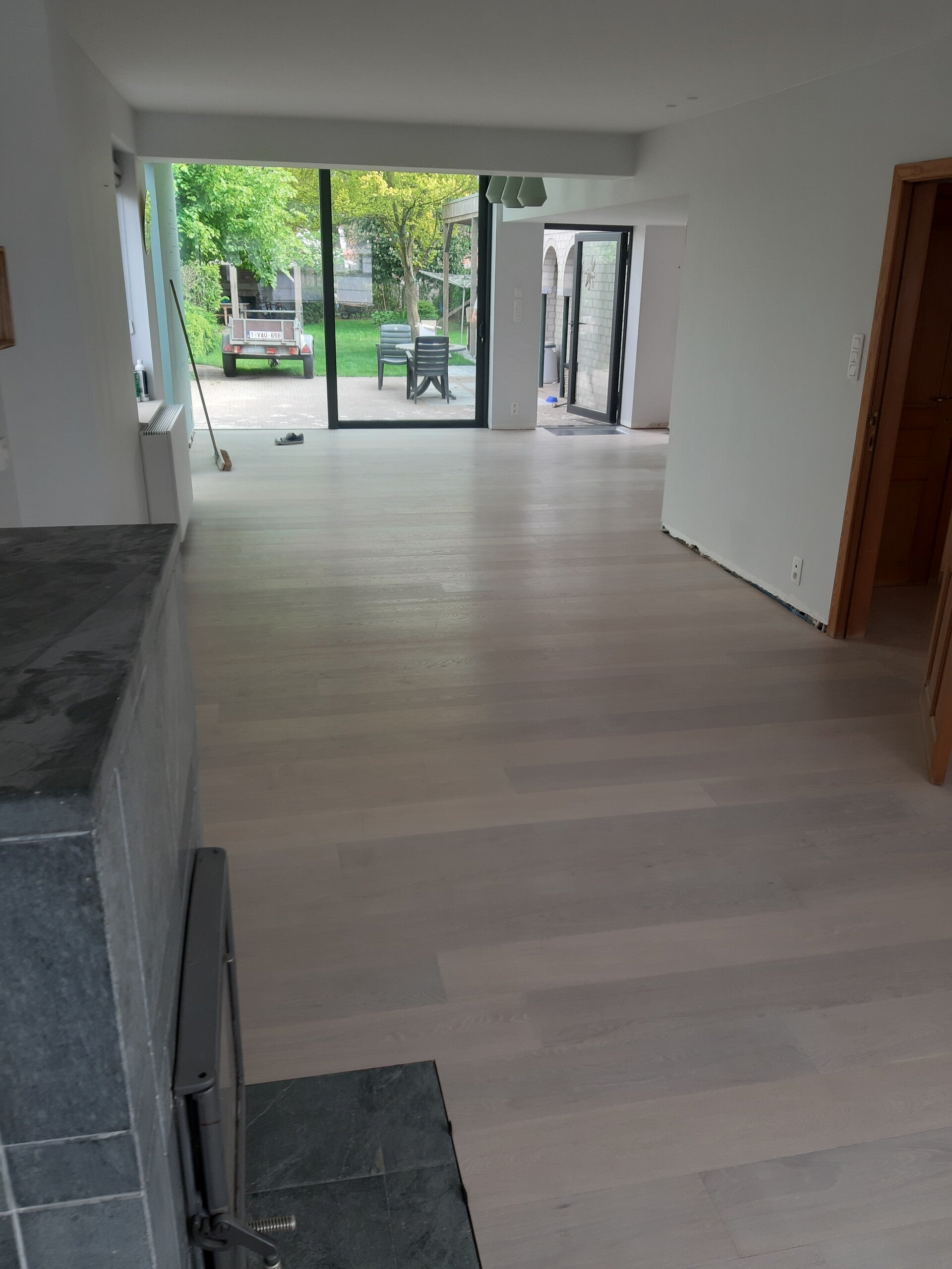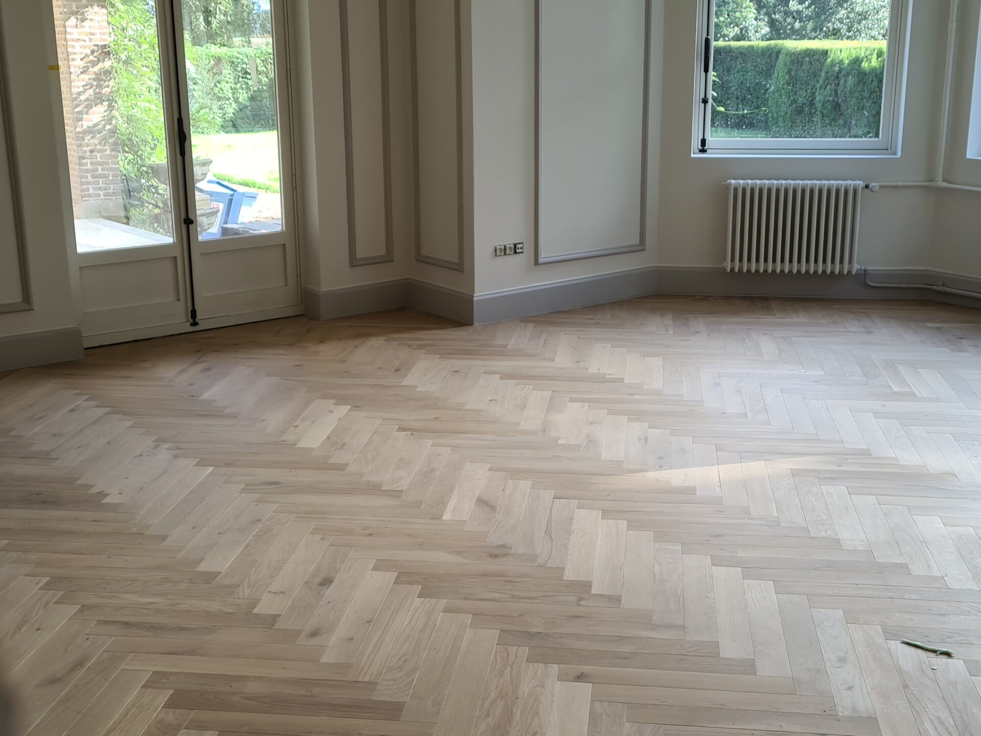 Plaatsing natuurlijke vernis gezandstraalt/Pose vernis naturel sablé
